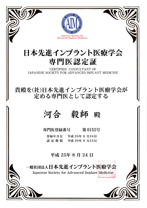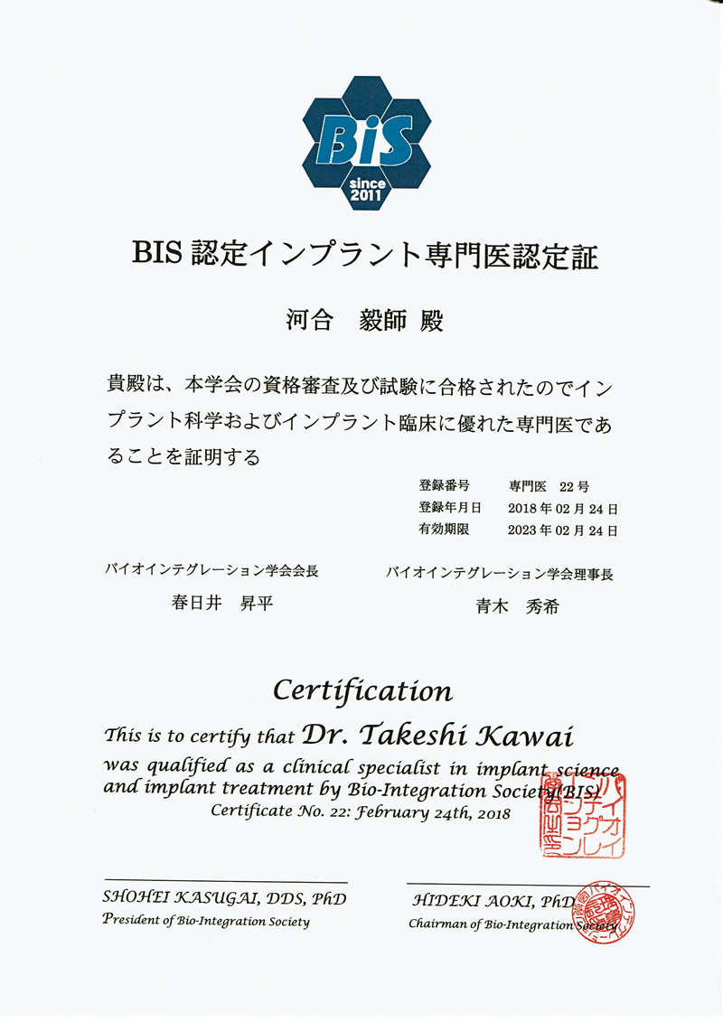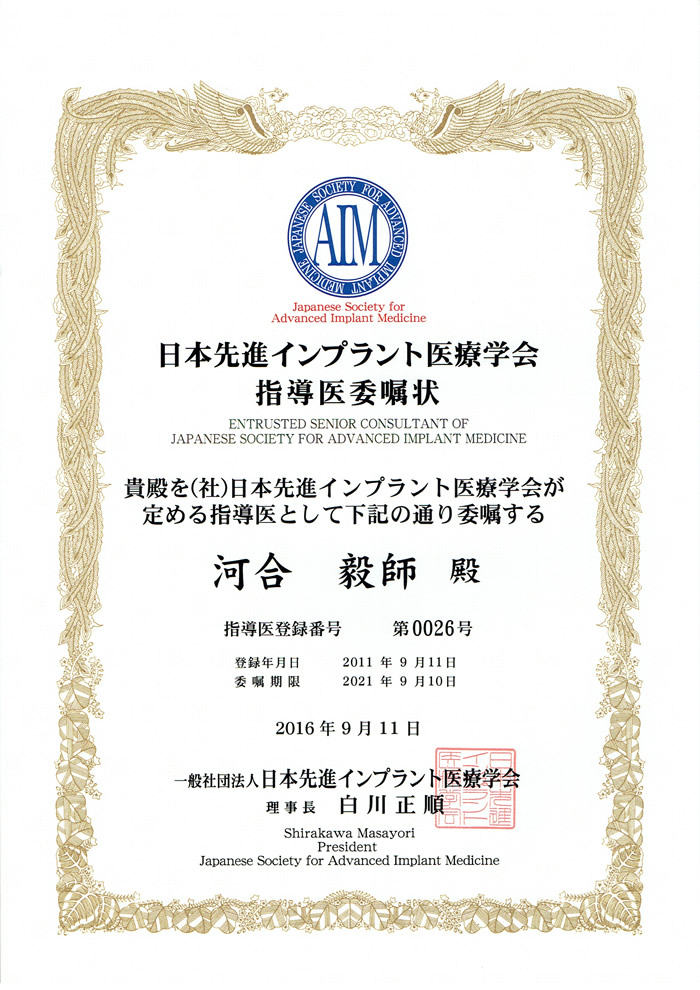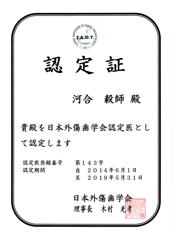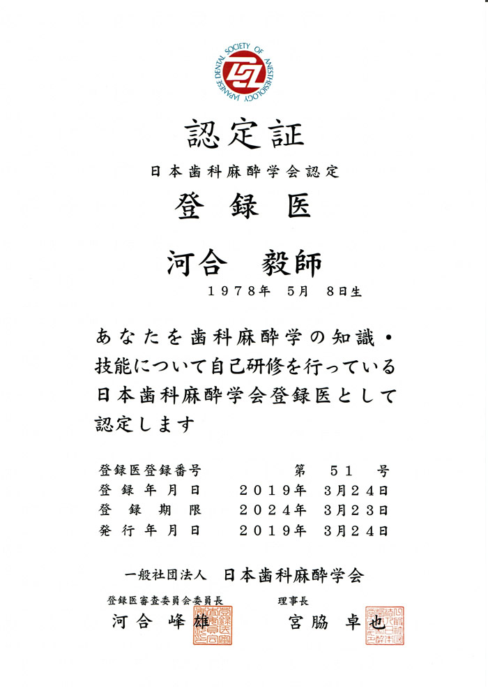 院長・歯科医師:河合 毅師Takeshi Kawai, D.D.S.,Ph.D.