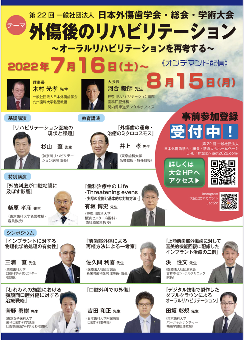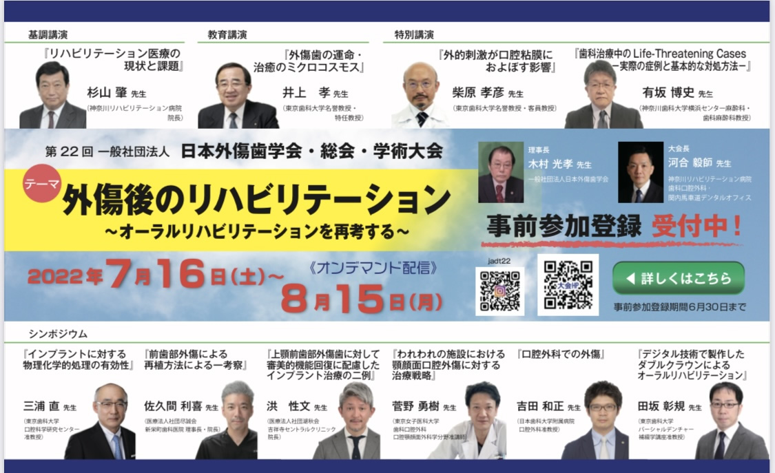 1. 第22回一般社団法人日本外傷歯学会総会・学術大会 大会長
