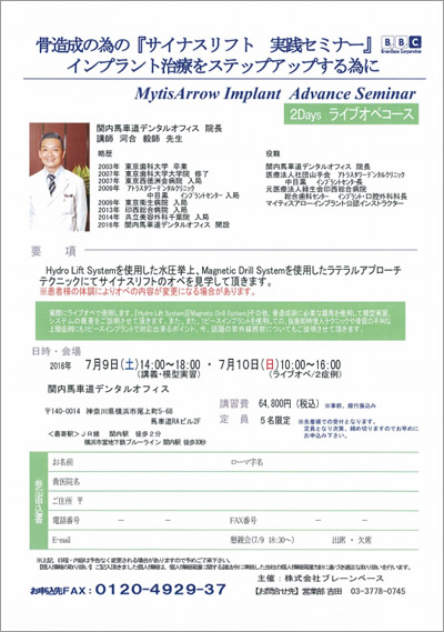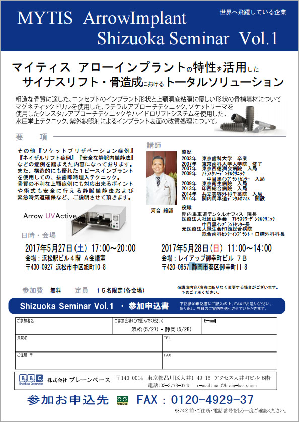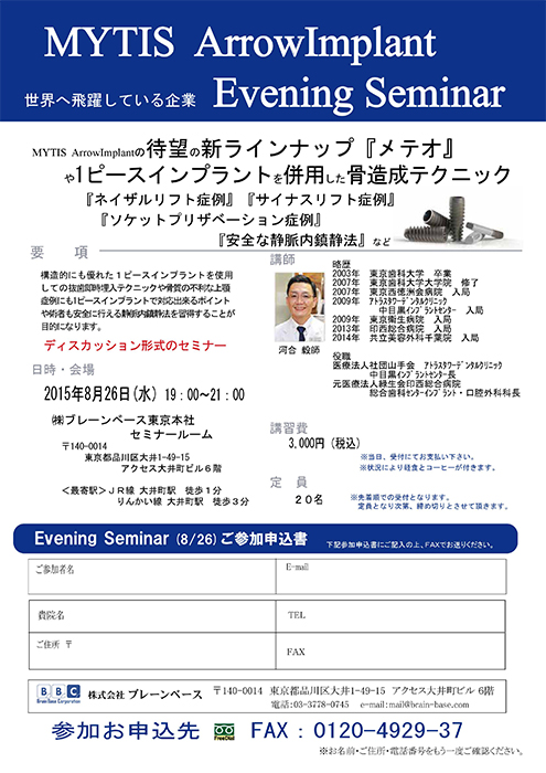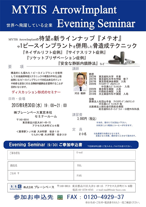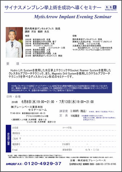37. Mytis ArrowImplant Evening Seminar 『1ピースを用いた骨造成テクニック』