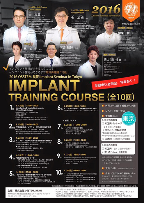 2016年3月12日~7月24日 於OSSTEM AIC 研修センター(東京都大田区)