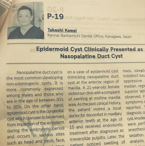24. 奇形歯から生じた歯根嚢胞を契機に発見された鼻口蓋管嚢胞の1例